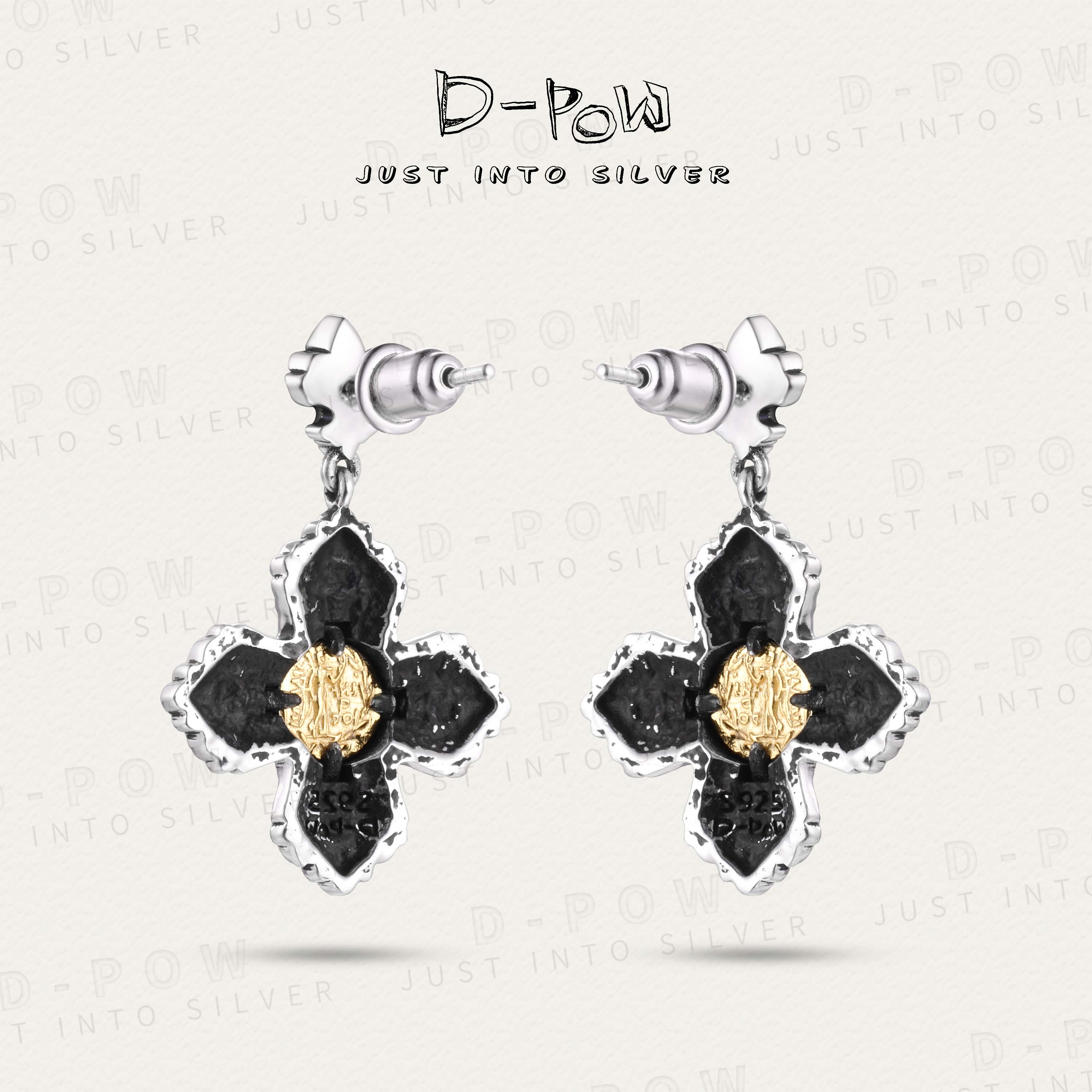 D-Pow 925 Ancient Coin Cross Texture Earring