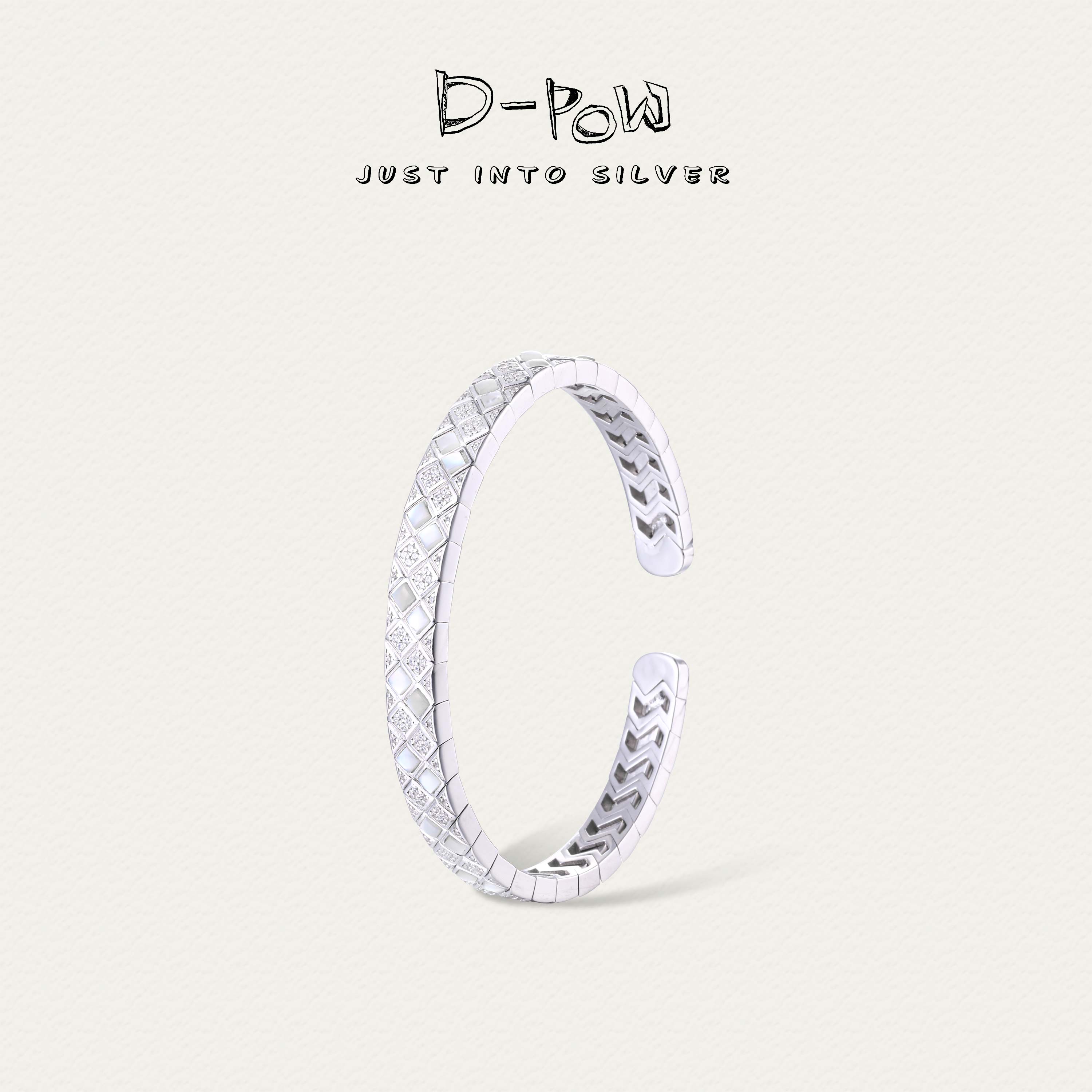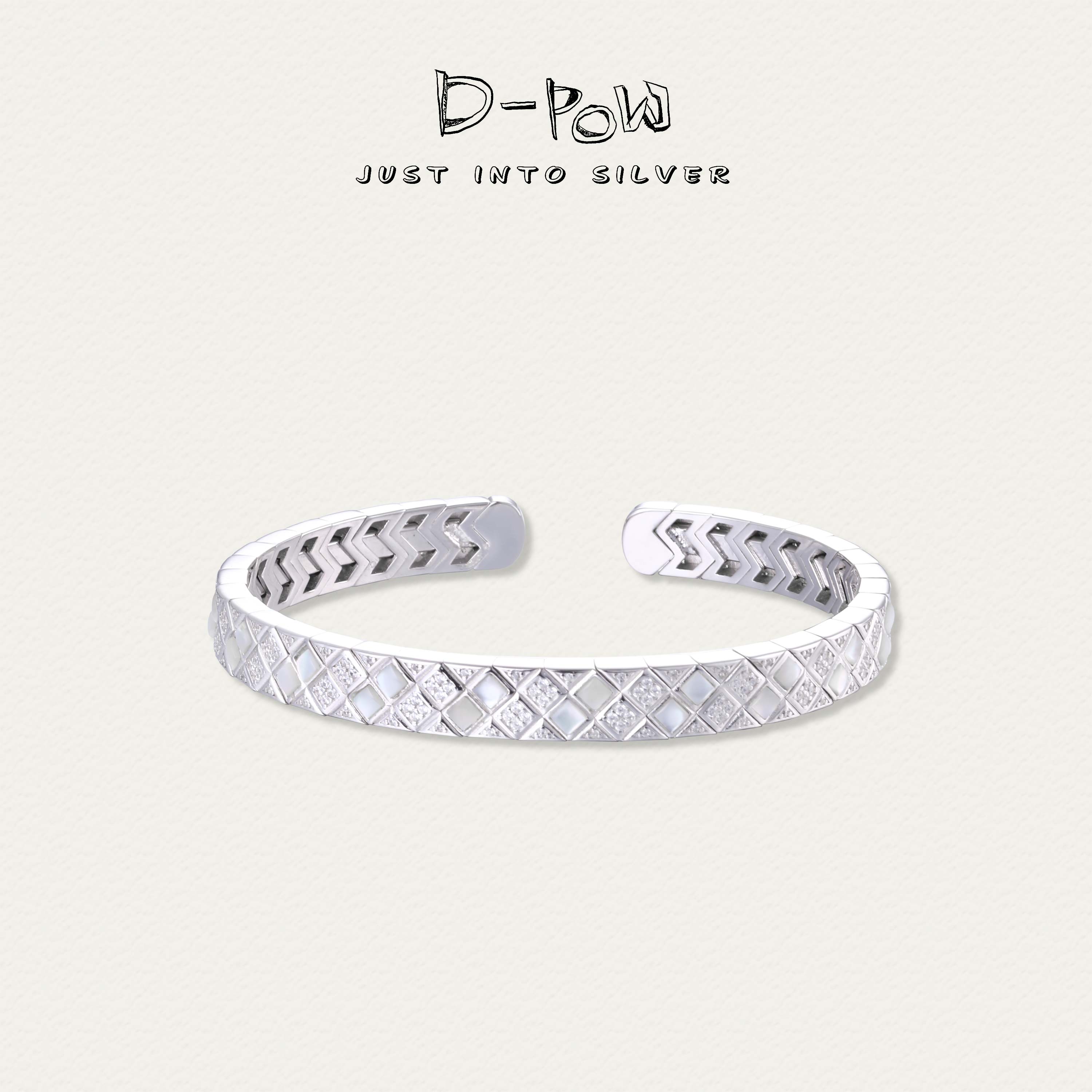 D-POW Quilted Mother-of-Pearl & Cubic Zirconia Open Bangle