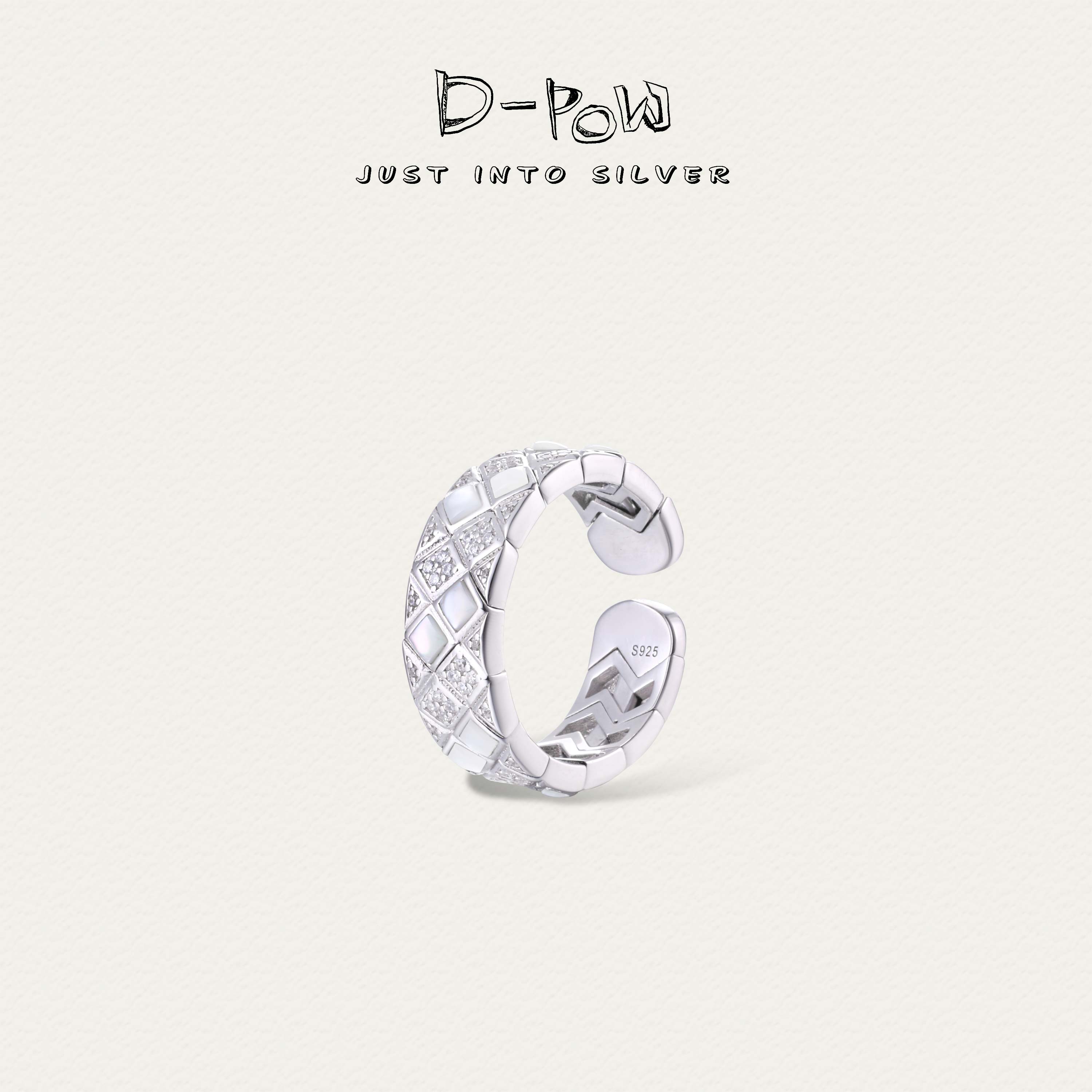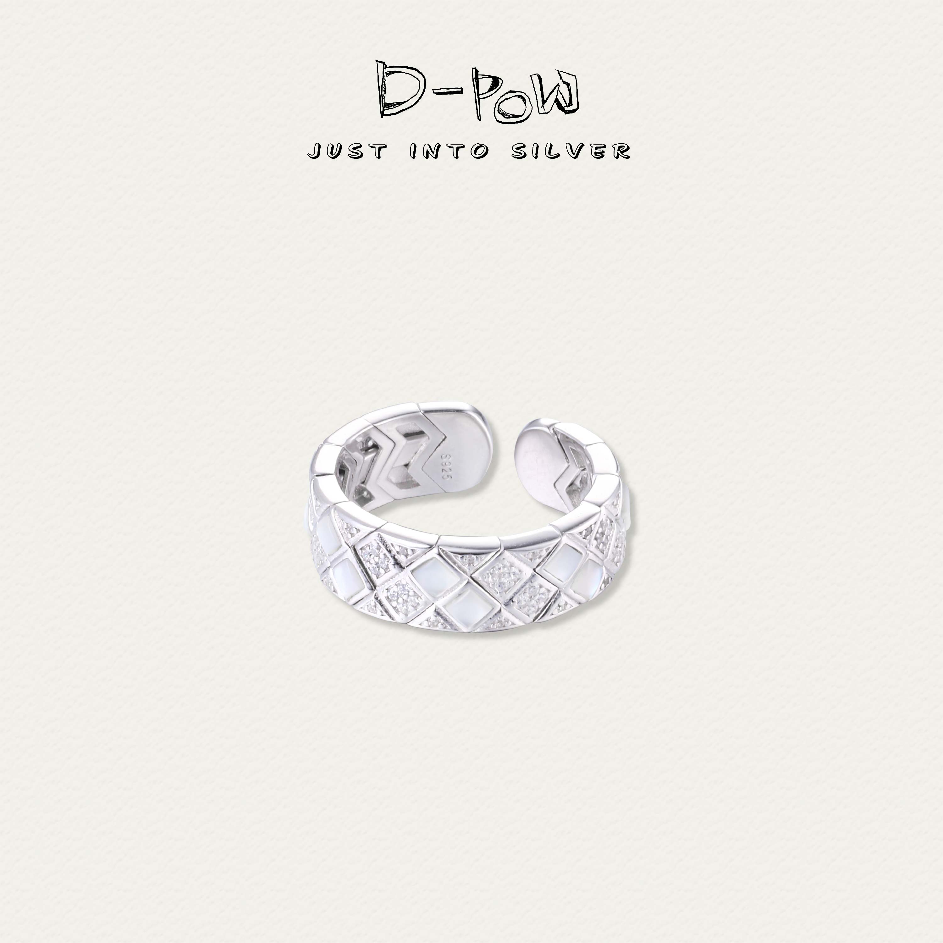 D-POW Quilted Mother-of-Pearl & Cubic Zirconia Open Ring