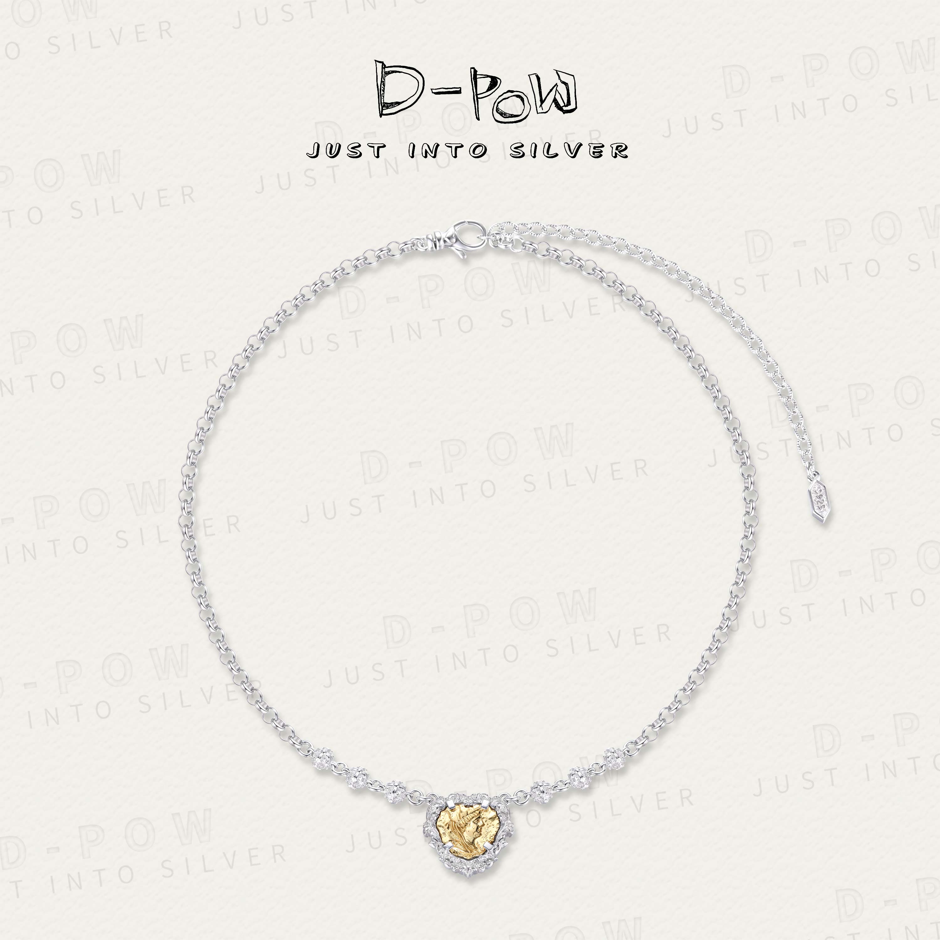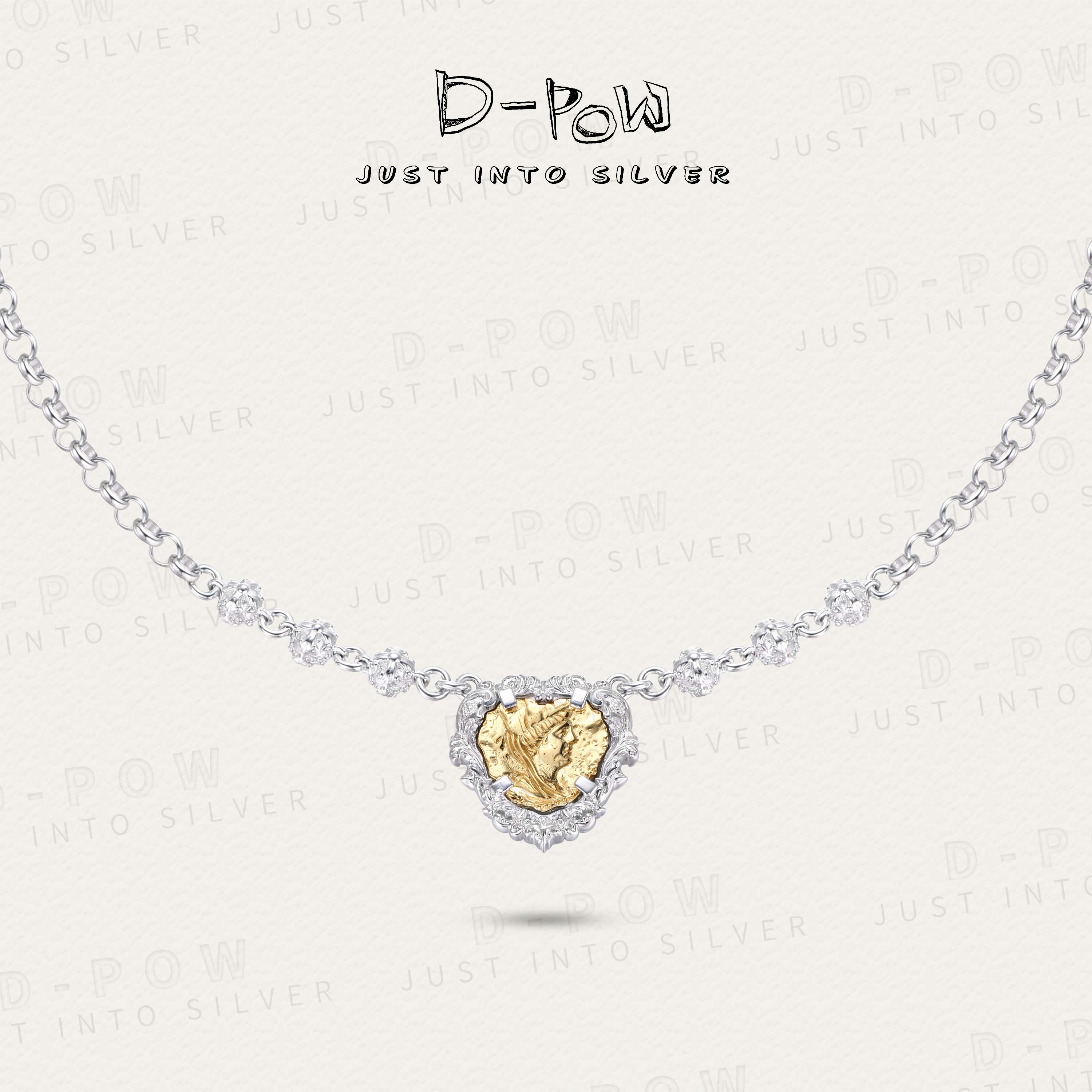 D-POW Sterling Silver Heart Necklace with Gold Accent & Cubic Zirconia Detailing