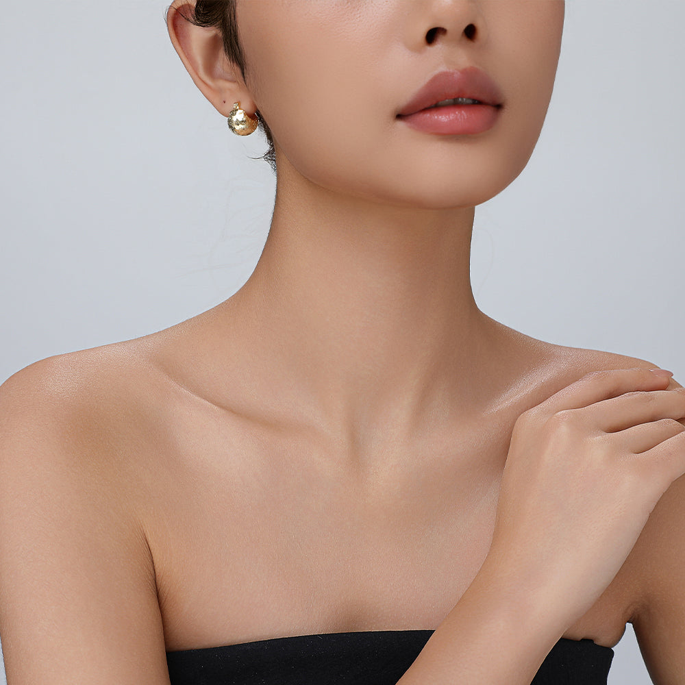 Their surfaces, cut like frozen constellations, shimmer with the memory of untouched snow and the ephemeral beauty of ice just before it melts. The open curve of the ear cuffs is not merely a shape—it is a passage, a pause, a moment held between motion and meaning.