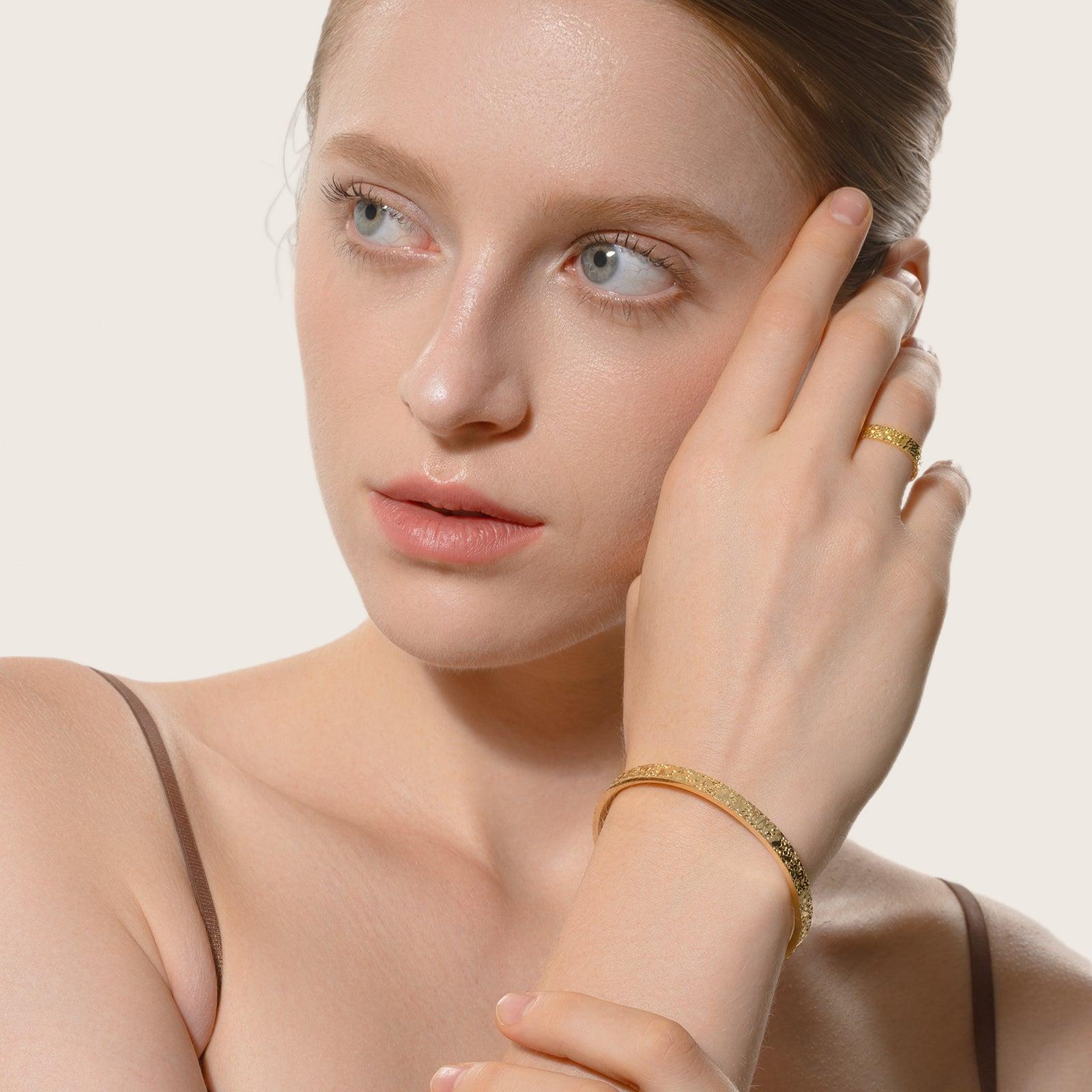 I've never spent this much money on Sterling Silver, but the reviews were glowing and I wanted a sterling bangle to add to my collection. This one was beautiful, adjustable, shiny, had interesting texture, and came highly recommended, so I took a shot. The package came quickly and was so well packaged. I opened the mailer bag, found a well-sealed cardboard box. I opened that to find a jewelry box, a flattened gift bag, and a care instruction card. Once I opened the jewelry box I found the bangle well-protected in two layers of plastic bags. The bracelet when unpackaged was dazzling! It has a great heft, a nice diameter, adjustability as promised, and overall superb eye-appeal. If I had been gifting this bangle I would have been very proud. I gifted it to myself and am delighted. This bangle bracelet will become an important part of my sterling silver wardrobe. The price is far better for the weight than I've seen in my searches. I love the textured design and the shininess. I love the weight and feel, adjustability, look, value, and awesomeness of this bangle bracelet. Like everyone else, I highly recommend. I ordered the classic sterling silver, but I'm sure the gold looks amazing, too.