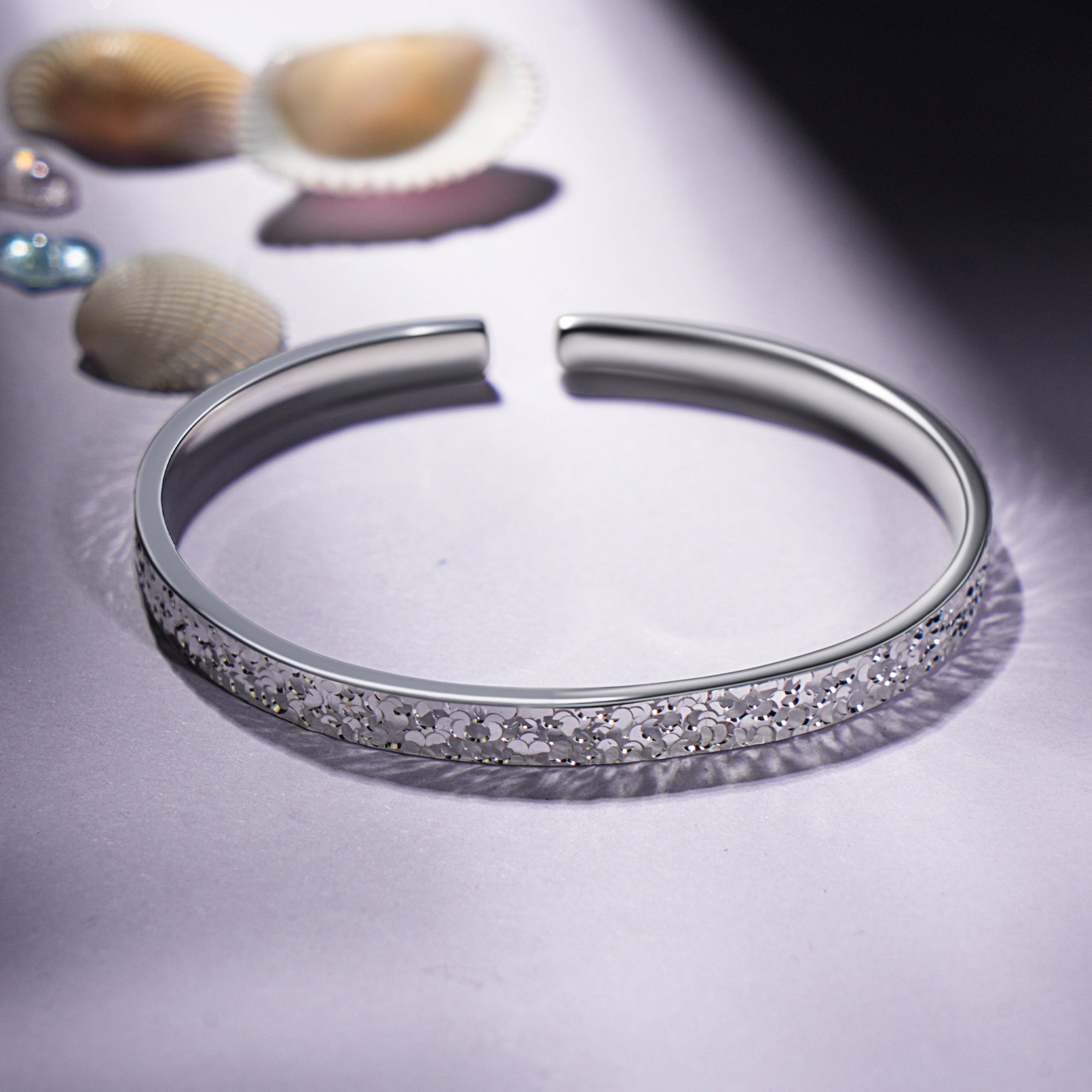 This bracelet looks very elegant. This design gives it a shimmer under light and it all looks clean and bright. It feels smooth on the skin and is comfortable to wear.However, the size is something buyers should be aware of! The diameter is listed as 5.5 cm and that is quite small. While the opening is adjustable just a bit! It is still clearly designed for very slim wrists, possibly best suited for teenagers or women with petite builds. If you are buying this as a gift - I would strongly recommend measuring the wrist or comparing with another bracelet first!The bracelet itself is well-made and comes nicely packaged, so it would make a lovely gift - just not for everyone. It is a beautiful piece, but definitely more for delicate wrists.