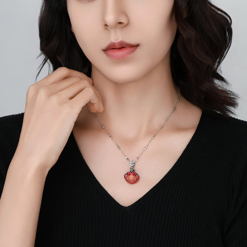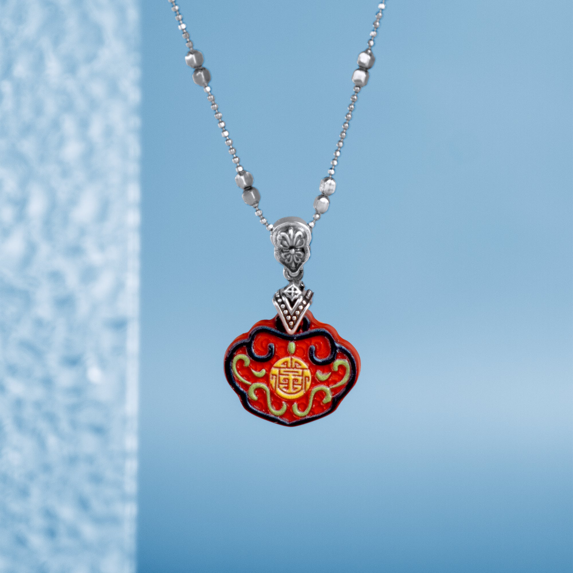 [Lustre Ruyi] D-pow Handcrafted Chinese Red Cinnabar Necklace