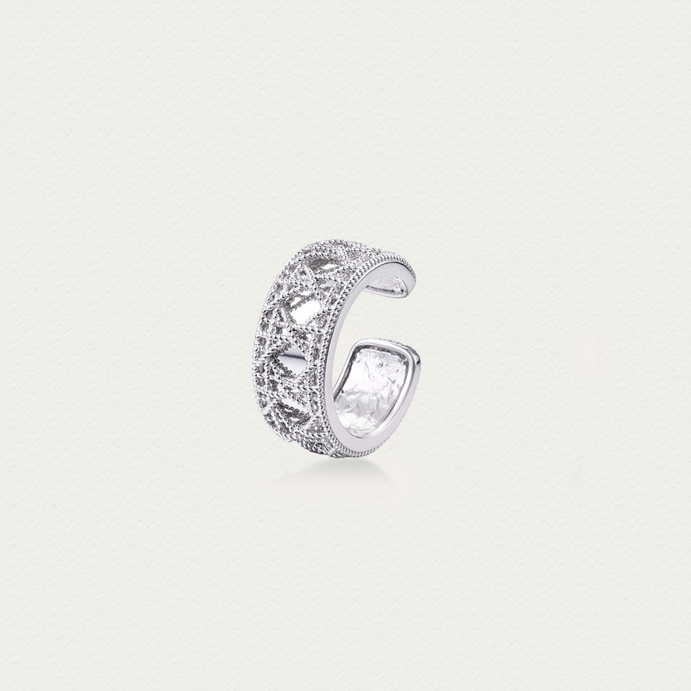 Their surfaces, cut like frozen constellations, shimmer with the memory of untouched snow and the ephemeral beauty of ice just before it melts. The open curve of the ear cuffs is not merely a shape—it is a passage, a pause, a moment held between motion and meaning.