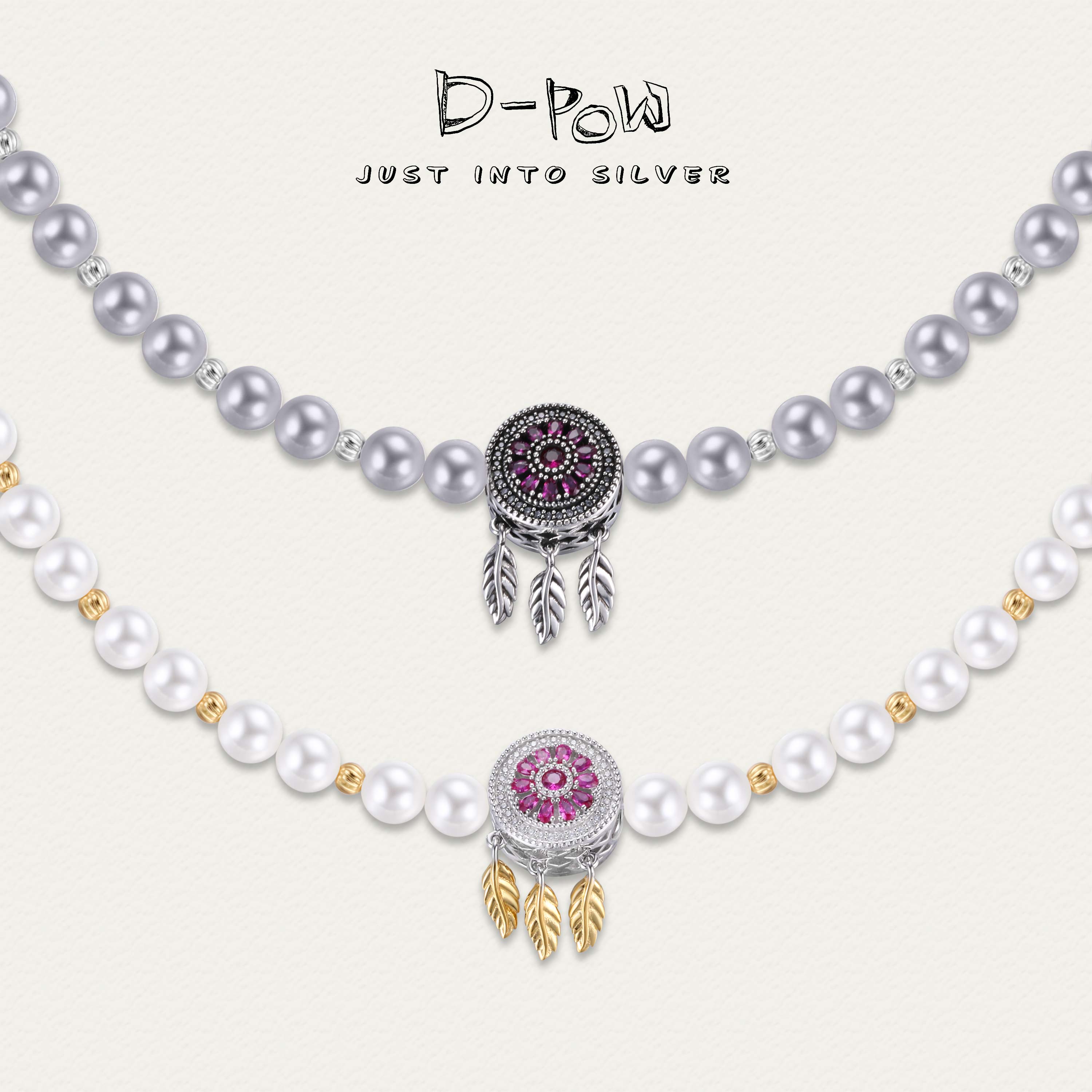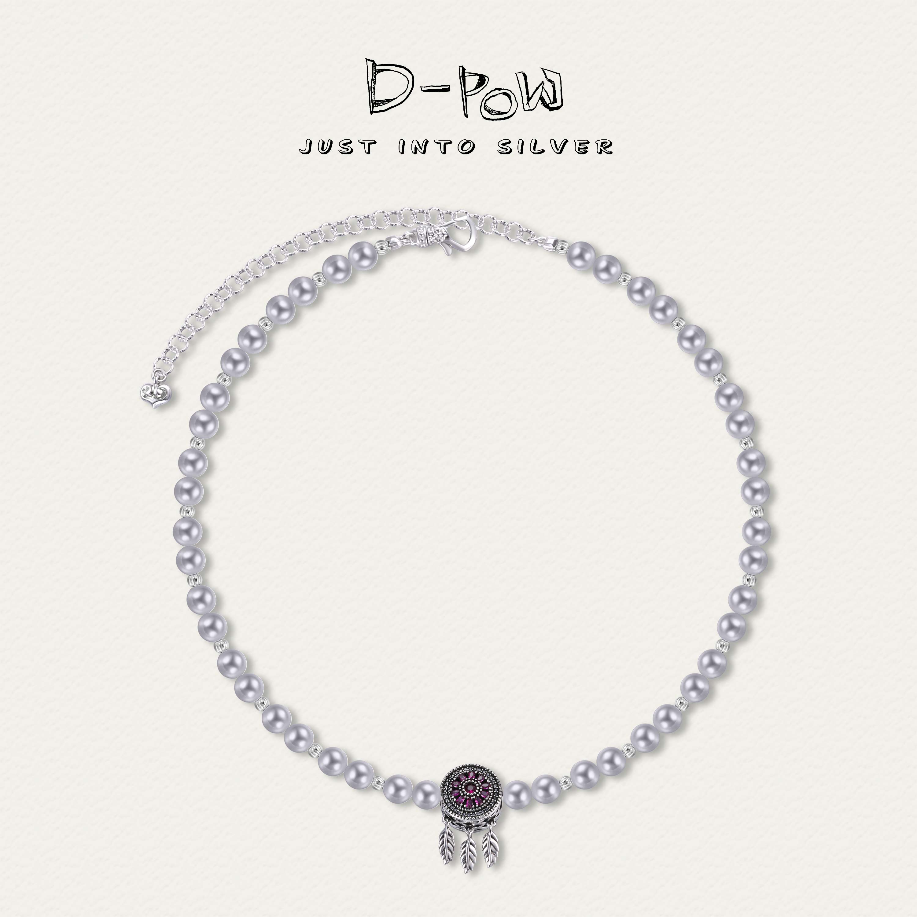 [Whispers of Dreams] D-POW Handcrafted Pearl Sterling Silver Necklace Featuring an Enchanted Dreamcatcher Disc 48cm(18.9'')