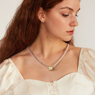 Adorned with lustrous pearls, the necklace adds a touch of softness to the structured geometry, symbolizing wisdom and grace. At its heart, the central gem shines like a star in the night sky, representing hope and infinite possibilities.